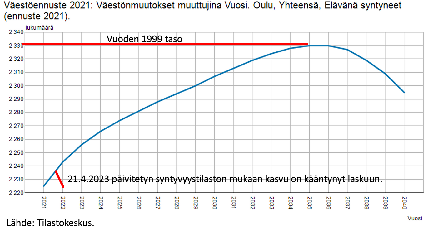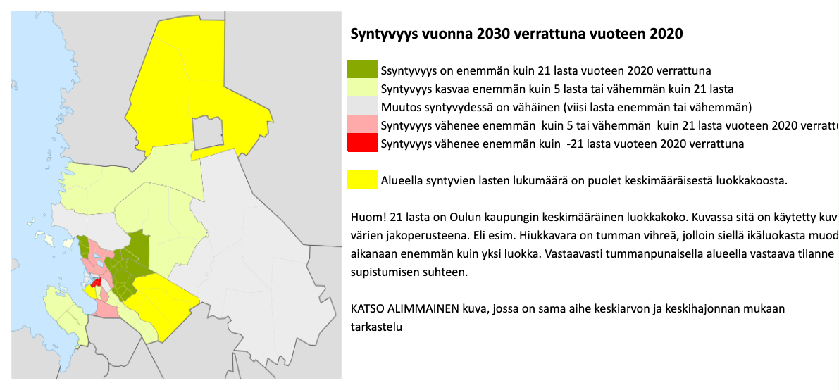 Ennustettu syntyvyyden kasvu 2030 on suurinta Hiukkavaarassa, Jääli-Korvensuoralla ja Pateniemessä