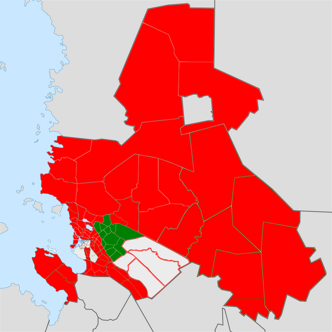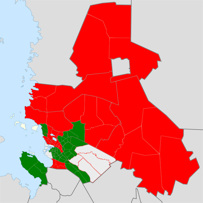 Muutos 2030-2020 on merkittävä suurimmalla osalla alueista